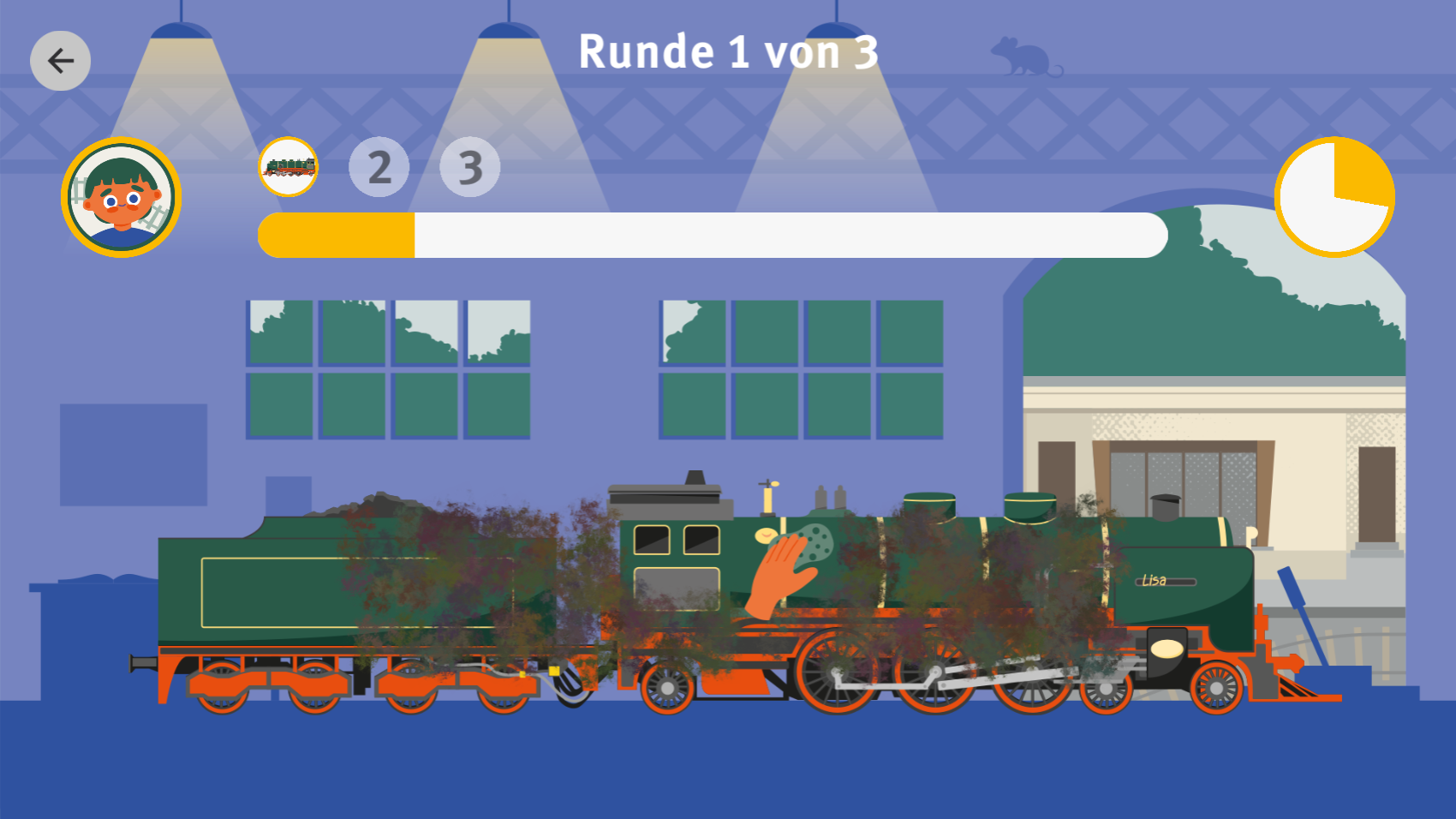 Kleine LokputzerIm Auftrag der Staatlichen Schlösser, Burgen und Gärten Sachsen gemeinnützige GmbH Zeitraum 2025Putze die Loks der Parkeisenbahn Dresden entweder gegen die Zeit oder gegen eine andere Person. Lass die Finger glühen! ZurückJetzt spielen!